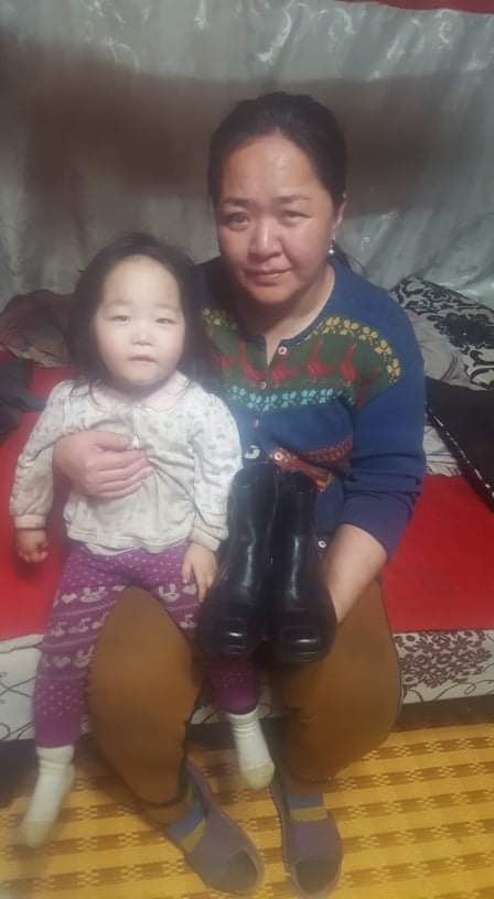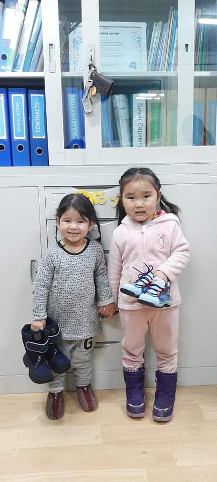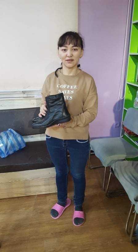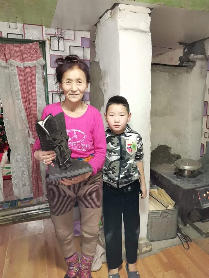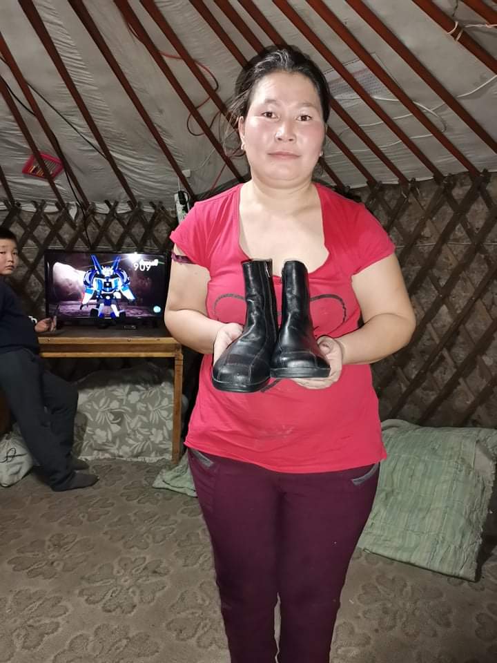 Eine Spenderin aus Deutschland hatte ca. 800 neue paar Schuhe, sowie etliche Jacken und Pullover gespendet, einschl. der Transportkosten in die Mongolei.