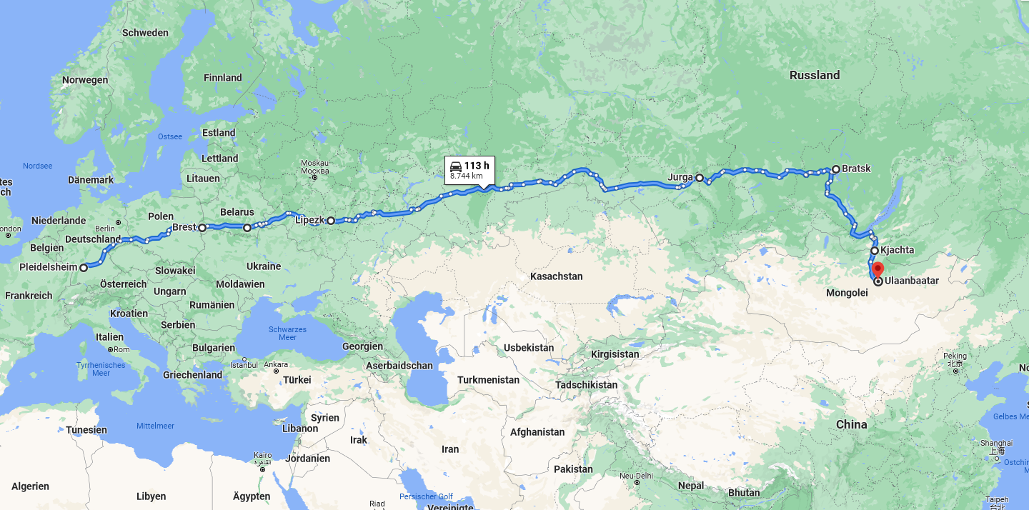 Am 20.11.2021 wurde die Sendung von einer auf den asiatischen Raum und hier besonders der Mongolei spezialisierten Spedition per Sammeltransport von Pleidelsheim